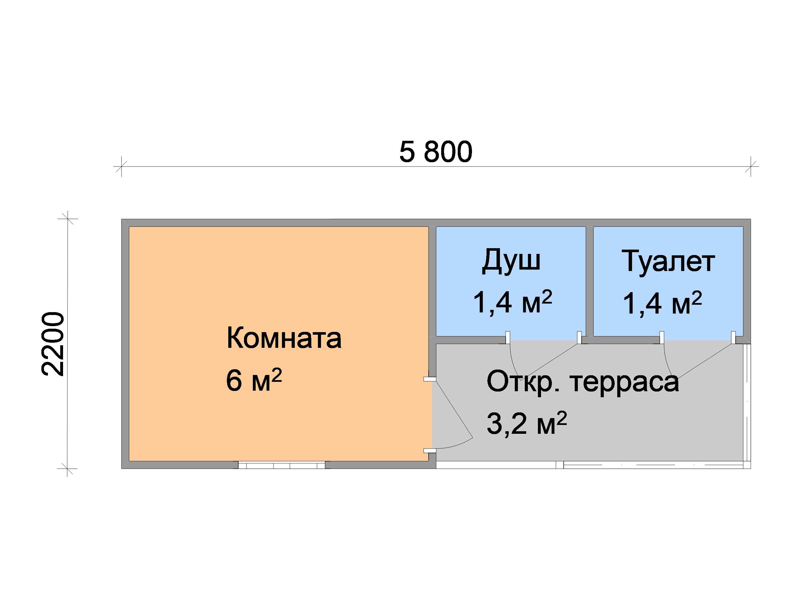 Бытовка для дачи в стиле хай-тек 6х2.4 распашонка6х2,414,4ДВП-Оргалит: